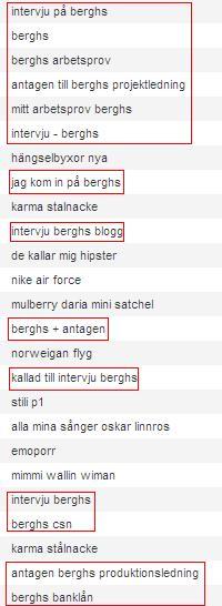 Fördelen med att ha sin blogg på wordpress är att jag kan se hur ni hamnade hos mig – vad ni sökt på etc. Vanligaste sökningarna ser ni ovan, det är nästan uteslutande Berghs som är på tapeten.