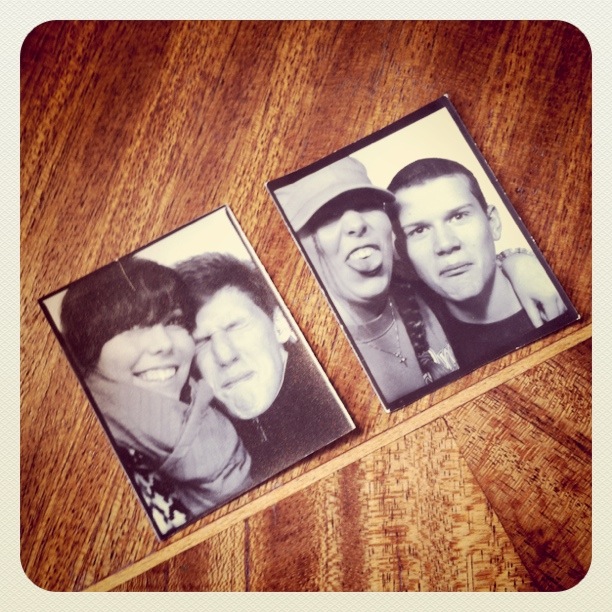 Älskade automatkort. Det till vänster tog jag och Kinky Karl under någon av alla våra fikor, av håret att döma är jag nog inte en dag över 21. Till höger möter ni mitt 15/16 år gamla jag och min första riktigt pojkvän John, som än idag är min bästa vän.