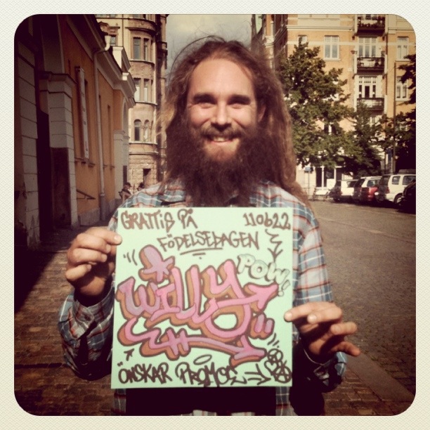 Fast den present som fick starkast reaktion var inte bara från mig. Sist Faye var i stan frågade jag om hon inte kunde dra i lite trådar och få Ws största idol (mannen på bilden) att skriva grattis på en servett eller något i den stilen. Är det något Faye inte kan så är det att göra något half ass, och det är en av de många anledningarna att hon är en av mina bästa vänner. Ett samtal från Panudro i Malmö påminde mig om detta och några timmar senare fick jag detta MMS: