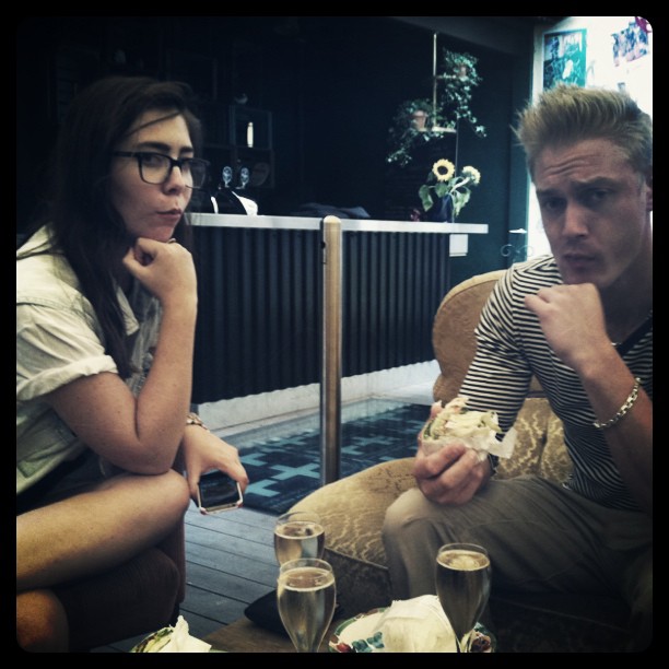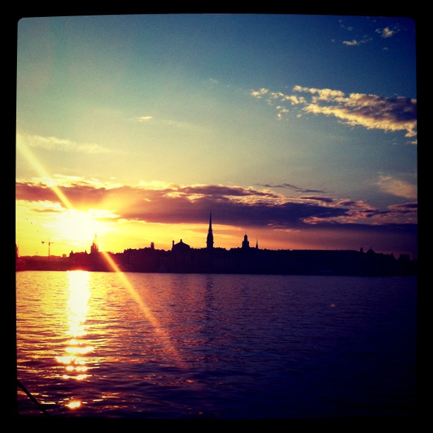 After drivinglesson no six I met my man and Mr Shrimp for what was supposed to be a date-day (but turned in to a mass date ha!)and for a trip to the Mulberry store. I’ve been working overtime like a crazy woman to save up for a Mulberry Daria mini satchel. It was my reward for a hectic spring, awsome grades and acceptance into Berghs. We drank champange in Story hotels backyard (I love that place) and continued to Södermalm where we bought new tumblers and met up with two more of my bonusboyfriends. Last but not least me and W went to Fotografiska – and then walked home for red wine and lasanga just as the sun went down over this beautiful town we call home.