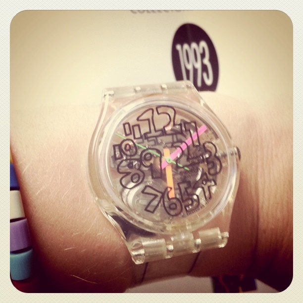 När jag var liten ville jag ha en Swatch klocka mer än mycket annat. Vi hade inte råd. När jag väl började tjäna egna pengar fanns de inte kvar – iallafall inte på samma häftiga utförande som under nittiotalet. Efter att ha gått in på Oldstock.se hemsida varje dag för att kolla om den här från sommaren 1993 fanns kvar fick jag nog. Det var min tur nu! Så för att fira sex rökfria månader klickade jag hem den. Nu har jag aldrig behövt sakna något på så sätt, min mutti har varit exemplarisk på att vara en (mer eller mindre) ensamstående förälder. Hon har skämt bort mig på sitt sätt och jag är enormt lyckligt lottad.