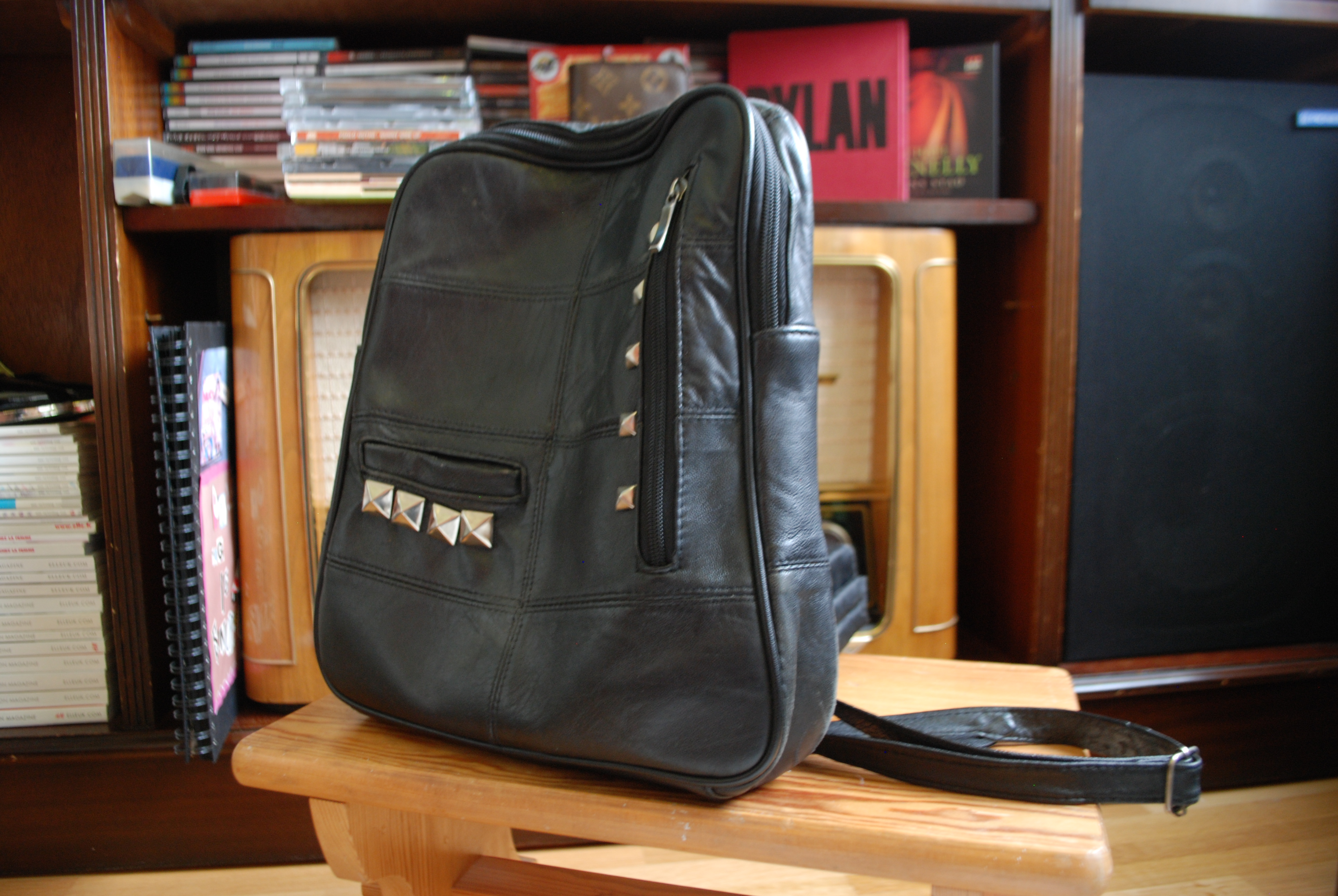 Bästa ryggsäcken som fått lite extra kärlek i form av nitar. Second hand historia. 100 kronor.