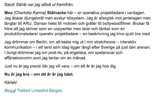 Min grupp fortsätter förvåna mig, vi fortsätter växa och utvecklas varje dag – på samtliga plan. Precis som det där one night standet som visade sig vara något att satsa på. Vi lär oss mer än vad vi kanske anar av varann, och det är galet häftigt. Hejja oss!