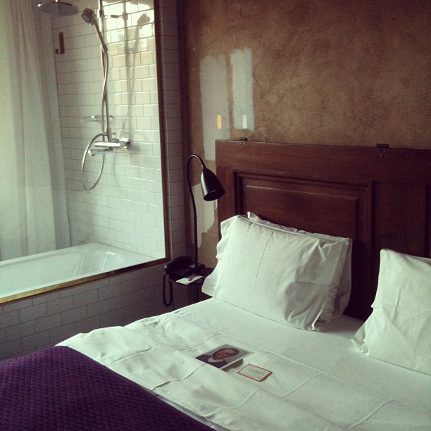 Story hotel uppfyller alla våra förhoppningar, älskar dörren som lyfts av och monterats som sänggavel, FACE produkterna som ingår, konsten som tryckts och målats direkt på väggarna och att man får fylla minibaren med medtagna varor.
