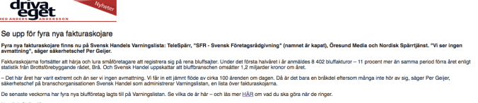 Kastrofon Media AB (Öresund Media) is known for tricking people into fake invoices to small buisnesses, they are rude and sometimes even scary – making shit up about your non-exsisting google ads. So If this number +46 (0) 841043940 calls you, don’t answer – call the police.