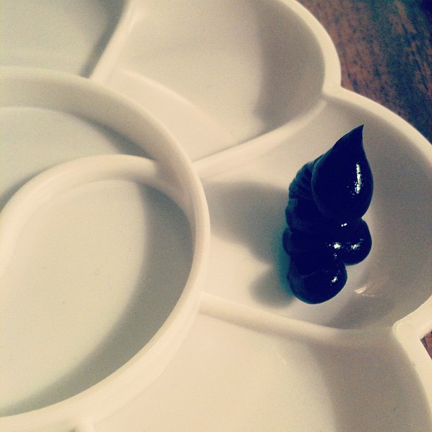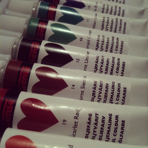 För två år sen fick vi akvarellfärg och oljefärg med set av Ws familj. Inte gett mig an dem fören nu. Haft en tavla jag tänkt göra under en längre period. Någonstans gick jag vilse i tankar om hur en målning aldrig väntar på en reaktion, hur den aldrig ber om något tillbaka, hur den inte bryr sig. Det spelar som ingen roll om det är fult eller fint, så länge budskapet går fram i fantasin. Eller inte. Absolut men obestämt.