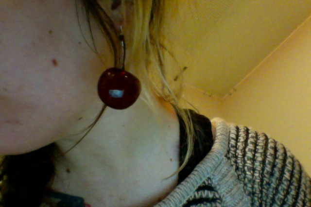 Jag har fått tusen frågor om vart jag köpt mina körsbärs örhängen, så sist jag var i Berlin gick jag till ståndet (som alltid står på samma plats på söndagsmarknaden i Mauerpark) och bad om en lapp. Nu kan jag äntligen ge er namnet på webbshoppen, Unikat Kantine! Här hittar ni den och här hittar ni körsbären.