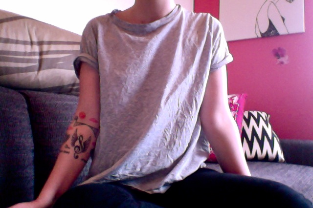 Så skulle det vara den här t-shirten. Den är säkerligen minst sex år gammal, jag vet inte säkert för att det var inte jag som köpte den från början. Istället fick jag den som betalning för hans halva av elräkningen. Han som satt i bungalowen jämte vår, som på skoj sa att han inte hade någonstans att bo när han kom tillbaka från sin världen runt resa. Jag kom hem innan honom, och hann göra slut med min sambo lagom till att han kom hem igen. Så han flyttade in – trots att vi bara känt varann i en dag för flera månader sen. Han den där som blev som en storebror, som fick plocka ihop bitarna när jag satt på golvet, han som skrek av glädje när jag överraskade honom med en egen säng i ett eget rum och som lärde mig att man fanimig inte nuddar dataskärmen.
