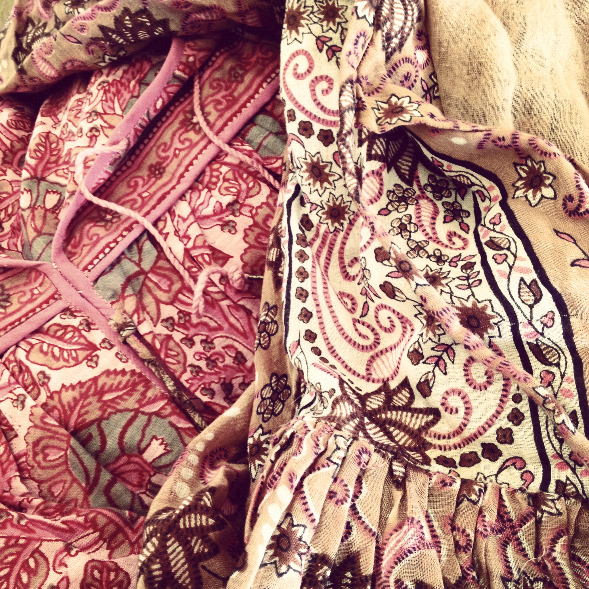 När jag fick beskedet om att min gammelmoster lämnat oss var jag inte förvånad, jag var inte ledsen – jag var lättad. Lättad för att jag visste att hon nu slapp förbanna sin maktlöshet, slapp vara rastlös och för att hon slapp vara sjuk. Den här gången var jag förbered. När hon lämnade oss insåg jag att det var två saker som inte fick försvinna med henne – de indiska bomullsklänningarna. I samma stund får jag ett sms från Minna som sa att jag skulle se till att jag fick dem, att de hamnade hos mig. Att de inte fick glömmas bort. De som hon älskat sen dagen de blev hennes och mer eller mindre bott i. De som hon kunde prata om hur länge som helst, de historier som alltid avslutades med hur stolt och imponerad hon var över Minna – “hon som är så bildskön”.