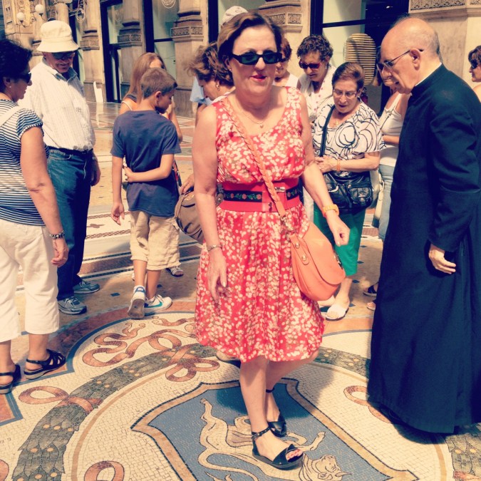 Hur som helst ligger det en “gata” med glastak till vänster om Duomo som även agerar galleria (Galleria Vittorio Emanuele) Har ett vagt minne om att Carolina Gynning nämner galna fester i de sinnesjuka lägenheterna som även huserar under detta glastak i sin bok “Ego girl” I golvets mosaik finner man även “Turin Coat of Arms” (föreställer en tjur) som påstås ge lycka om man snurrar – på sin högra häl – tre varv.