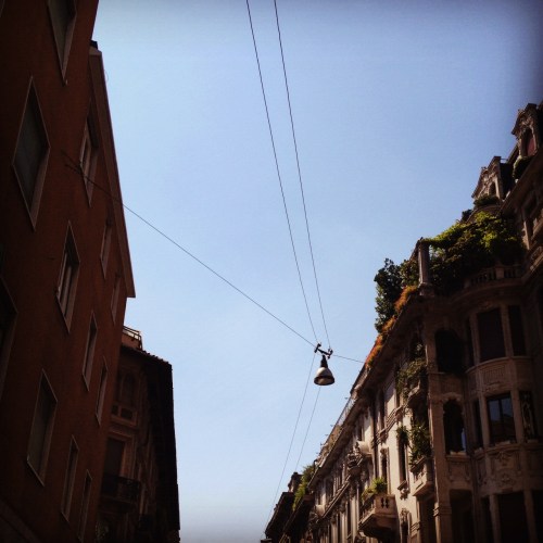 En station från hotellet ligger stationen Moscova vars kvarter stundtals påminner om om Berlin. På corso Garibaldi finner man en hel del (då stängda) vintagebutiker och mysiga barer. För er som tänkt “fynda” vintage skall ni inte åka till Milano – 800 kronor är inga konstigheter för en blåsa av okänt märke. Hur som, här varvas sekelskiftshusen med Italienskt designade nybyggen och balkonger fyllda av träd (i jakt på skugga)