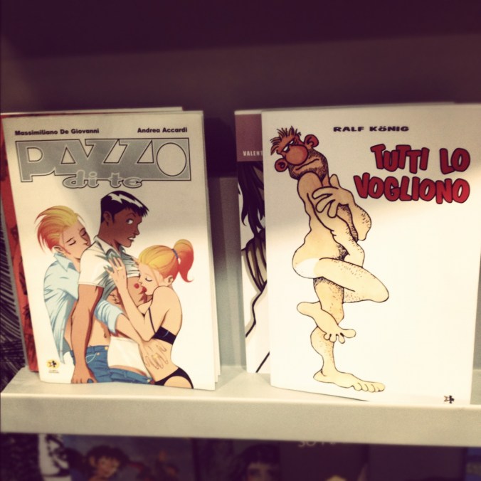 Längst kanalen i Navigli fann jag även en pärla i form av serietidnings-butik (slutet av promenaden, nästan längst bort) som hade mycket bra grejer. Tyvärr var det mesta på italienska – som de här t ex.