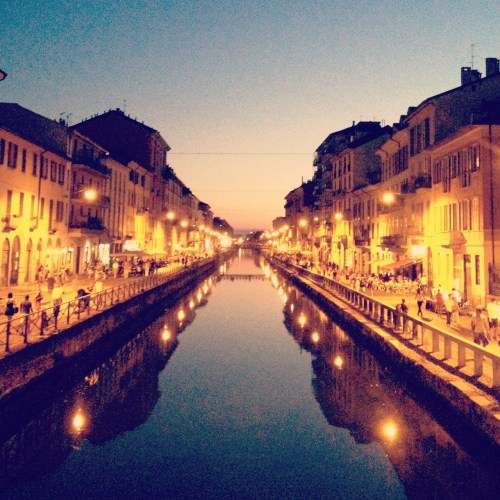 Näst sista kvällen hade vi blivit tipsade om ett område som heter Navigli (Metro Porta Genova FS) – “Det är Milanos svar på Amsterdam” sa receptionisten på vårt hotell. Nu har ju jag aldrig varit i Amsterdam – men mutti har det och hon höll med. I Navigli möttes vi äntligen av små brisar och på varje restaurang fanns det myggjagare – inte helt ologiskt då det går en kanal genom området.