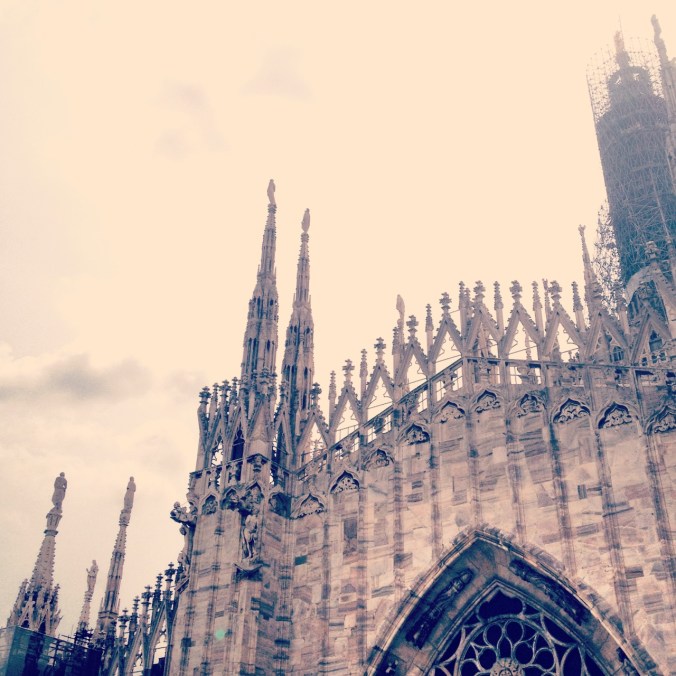 Jag är inget fan av turist-områden där en espresso kostar skjortan – men skall man inte äta är Duomo absolut värt ett besök. Duomo är namnet på den enorma kyrka som ligger mitt i Milano. Det första som händer när du kliver av är att du möts av en herrans massa män som knyter “gratis” armband runt din handled och informerar dig om att du nu är “blessed by Africa” Detta följs dock av att Afrika behöver dina pengar. Duomo är även området där alla lyxvarumärken har sina butiker – så ut ett strategiskt perspektiv är det inte så otippat att dessa män huserar precis där. Dessa män går även upp i rök så fort polisen spatserar över torget.