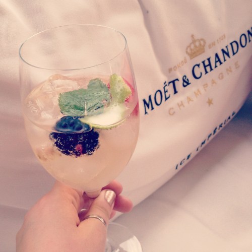 Åker du högst upp kommer du till restaurang-våningen där bland annat Moëts egen champangebar ligger. Jag och mutti unnade oss varsitt glas Moët Ice Impérial (kostar 16 €) – som vi förälskade oss i under förra årets resa till Berlin. Ice Impérial är alltså en champange anpassad för att drickas med is. De har även en uteservering som ligger i samma höjd som Duomos tak – så utsikten är även den lätt att förälska sig i. Betydligt trevligare alternativ än att svettas upp för massa trappsteg tyckte vi.