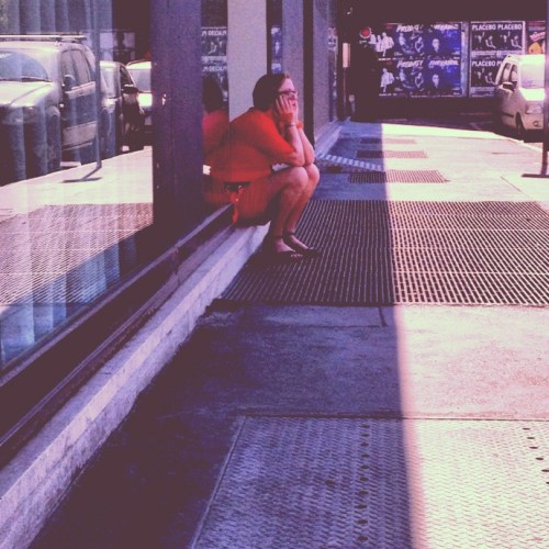 Här satt mutti och väntade på en klubbägare som skulle hämta upp oss för att sedan köra oss till en av hans tatueringsstudios. Vi lärde känna honom kvällen/natten innan. Dock kom han hem mycket senare än oss och låg fortfarande och sov när vi skulle ses. Tusen ursäkter senare började hans tatuerare istället skicka massa konstiga sms till mig som sa att han väntar på mig i Milano, att jag skulle adda honom på facebook och gud vet vad. Notera att jag alltså aldrig träffat tatueraren… Italianos alltså.