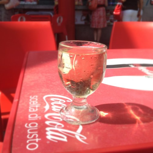 På tal om vin och Italien fick vi inte ett enda dåligt vin på-hela-resan. Helt galet med tanke på Sveriges trissta “husets”! Här är det dock ju inte importerat. I regel ligger ett glas vin på runt 4-5€ och som mest på 10€ Glöm inte heller att alla kiosker även agerar barer – för runt 2 € kan du pausa med ett glas i princip var som helst.