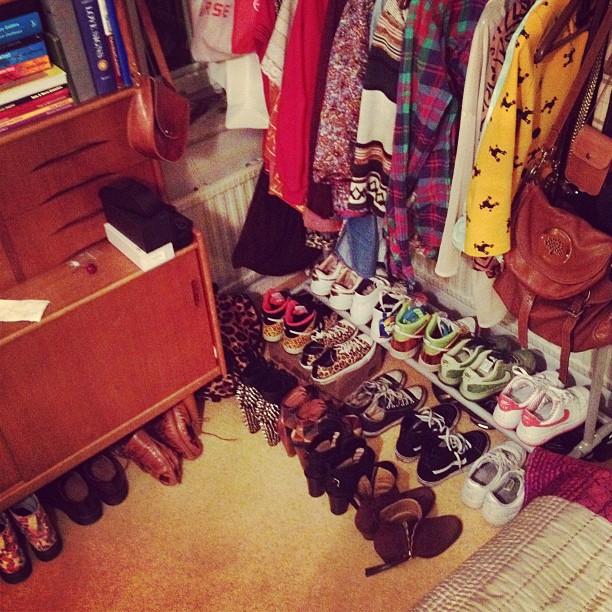 Ni har ju redan sett en massa magiska moments in time från singelhippan, här kommer lite behind the scenes. Jag tömde hallen på jackor och skor för att få plats med 30 par som inte var mina. Fram tills jag gjorde detta tyckte jag inte att jag hade så mycket skor – sen ställde jag upp in alla de som stod i hallen i sovrummet. Jag har jättemycket skor. Jag tar tillbaka allt mutti.