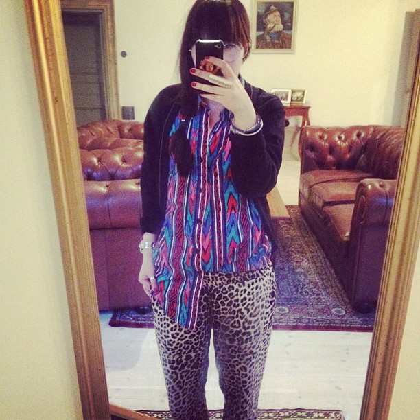 Det här skall inte morphas in till någon modeblogg, men såhär såg jag ut här om dagen – samma dag som jag insåg att jag inte äger ett enda tight plagg förutom mina svarta stuprör. No joke, inte ett enda. Som Minna sa, “jag har aldrig tänkt på det mer än att det är din stil” Jag som gärna överanalyserar saker som dessa har inte riktigt kunna släppa detta faktum. Skrev ett långt inlägg (som aldrig postades) om hurvuda tighta kläder används för att visa upp kroppen eller inte. Bla bla parningritualer och kvinnoideal. Fast å andra sidan tycker jag att min kropp är on fire – så mina slappa plagg är ju verkligen inte till för att dölja något? Dock är det ju så att jag kräks på alla idiotiska kommentarer om att jag är så smal att det kanske är en semi-omedveten underliggande anledning. Tänker att det får bli en personlig utmaning det här – to be continued…