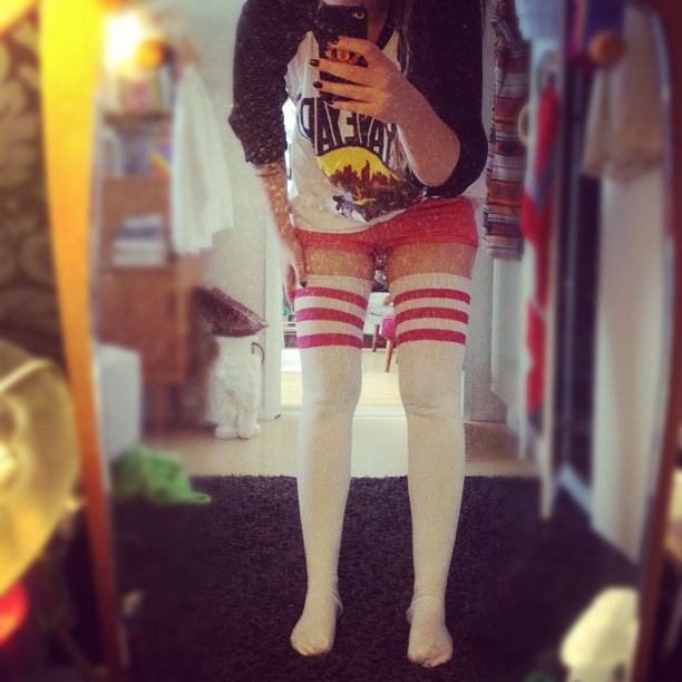 Jag lever och är heller inte lika obstinat som sist vi hördes, även om mina feberdrömmar bjuder på ofrivilliga reminders om douchighet. Jag är alltså toksjuk = sängliggandes sedan igår och då är det ju gött att man har härliga drafts att förlita sig på. Älskar tigh highs.
