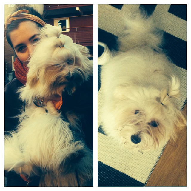 Sen gick det fort, precis som allt annat i den här relationen haha – vi åkte och hälsade på henne igår och idag flyttar hon in hos oss på prov. Dels för att se hur det funkar med oss och vårt liv, men också med H’s allergi. Jessie (som genihunden heter) är dock en såkallad “allergivänlig” hund och igår kände han inte av någonting trots att de då var tre stycken. Så nu håller vi tummar och tår för att det kommer att gå bra. Vi har ju äntligen två scheman som funkar så pass att hon i princip inte behöver vara själv mer än tre timmar någonsin.
