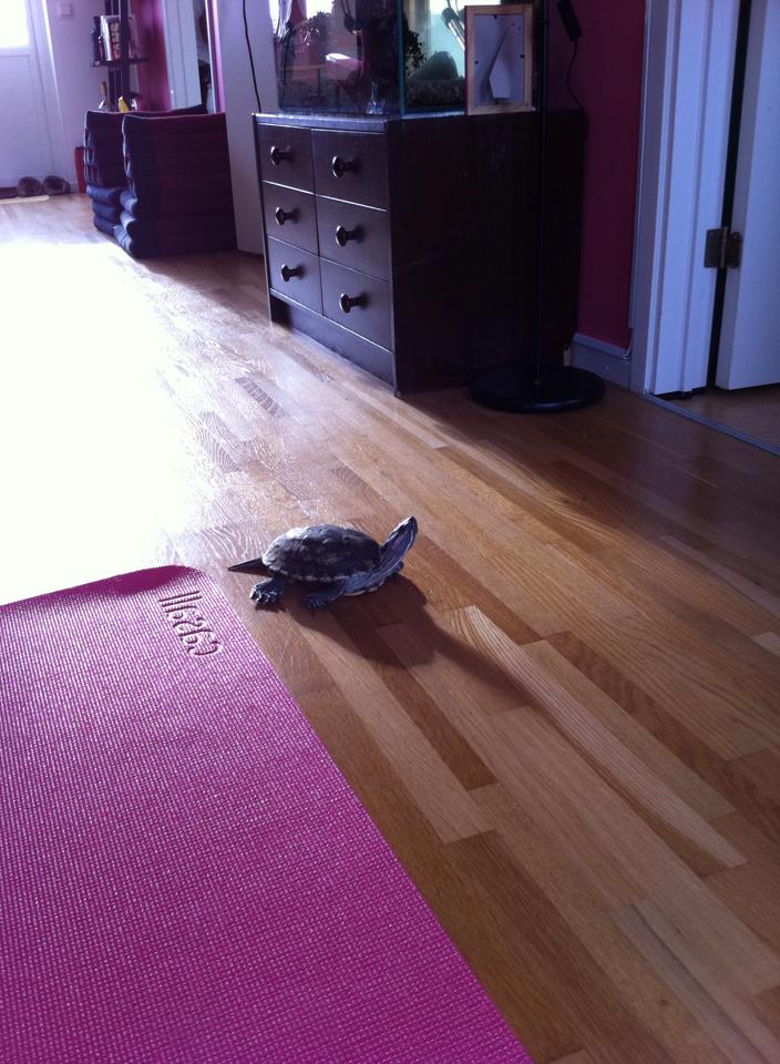 Klockan tre hade jag precis lagt på det sista jobbsamtalet, en sekund senare ringde det på dörren. Jag blir så paff att det första jag säger är “Varför ringer du på din egen dörr?” Vi kramas. Den här stunden som jag tänkt på non-stop sedan jag bokade flygbiljetten eskalerar i en kram! Inget filmiskt hångel här inte. Han står lutad mot köksbänken och jag sitter på matbordet. Vi mest stirrar på varann tills han säger att hans puls går bananer. Mitt svar på det; “Sprang du hem eller?” (jupp – I said it) Han börjar skratta och förklarar att det faktiskt kan ha något att göra med att jag är där. Detta följs av ett kollektivt “Vin!” Panik.