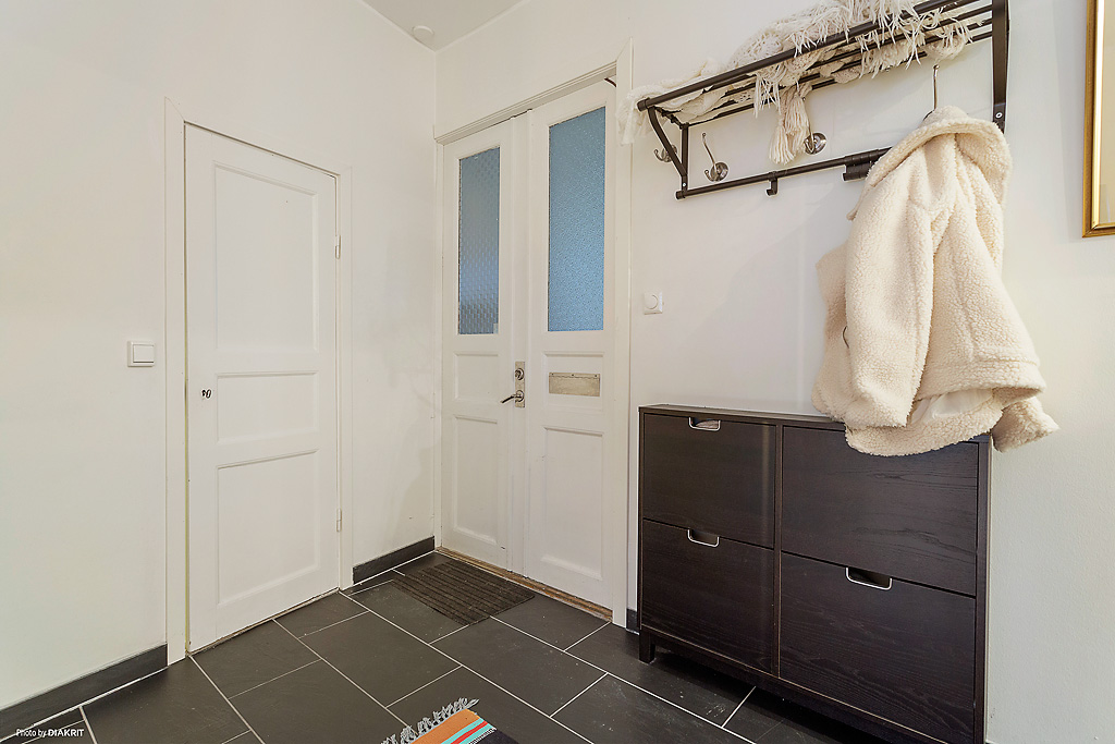 Jag började räkna ner i form av facebook-statusar, T minus hit och T minus dit. En månad senare satt jag på ett plan till Luleå. Lite förbannad över att behöva ha kängor på mig precis när det började bli sneaker-season i Stockholm och med ett glas rödvin till lunch. Han skulle jobba til tre och jag skulle landa vid ett. Post ett google-map race gled jag till slut in i den lägenheten som idag är vårt gemensamma hem. Lite som ett barn på julafton gled jag runt i en solid halvtimme och snokade runt, lägenheten var inte alls vad jag hade förväntat mig (läs beige unghenslya) – den var precis lika spretig och flummig som min. Någon blandning av sjuttiotal och betong. Lite olika tapeter överallt, som inte nödvändigtvis behöver täcka en hel vägg och kedjor med galgar istället för hatthylla.