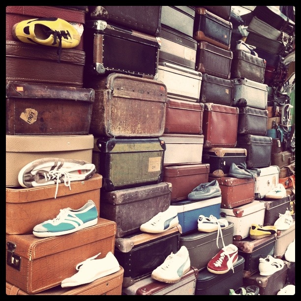 Kvällen innan hade jag hittat en intressant butik jämte Dr Pong – fast då var den ju stängd. Så efter en räd på Humana på Alexanderplatz (som är enorm, och har en “Trend” sektion och en “70s” t ex – färgkoordinerat och rimliga i priser) drog vi tillbaka. Butiken heter Steifelkombat och har så galet mycket skor – ALLA sorterade efter storlek – i väldigt bra skick. Dam- och herrbutikerna ligger vägg i vägg. Däremot skall du inte gå hit om du hoppas hitta något för en hundring, utan bör vara beredd på priser upp mot 800 kronor i vissa fall. Fast butiken är så vansinnigt välsorterad att jag har svårt att tro att du inte skulle hitta något att punga de priserna för.